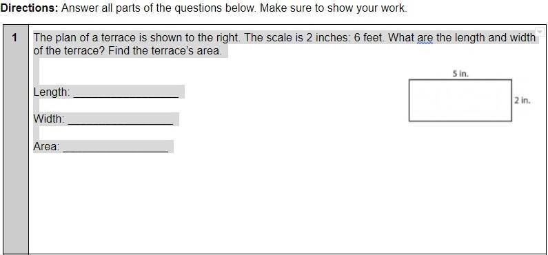- Length of terrace: <u>5</u><u> </u><u>inches</u><u> </u> [ Given in figure ]