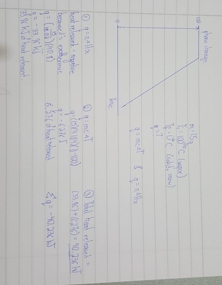 heat were released? [Specific heat of liquid water = 1.00 cal/g°C or 4.184 J/g°C); solid water 0.485 cal/g°C or 2.03 J/g°C]