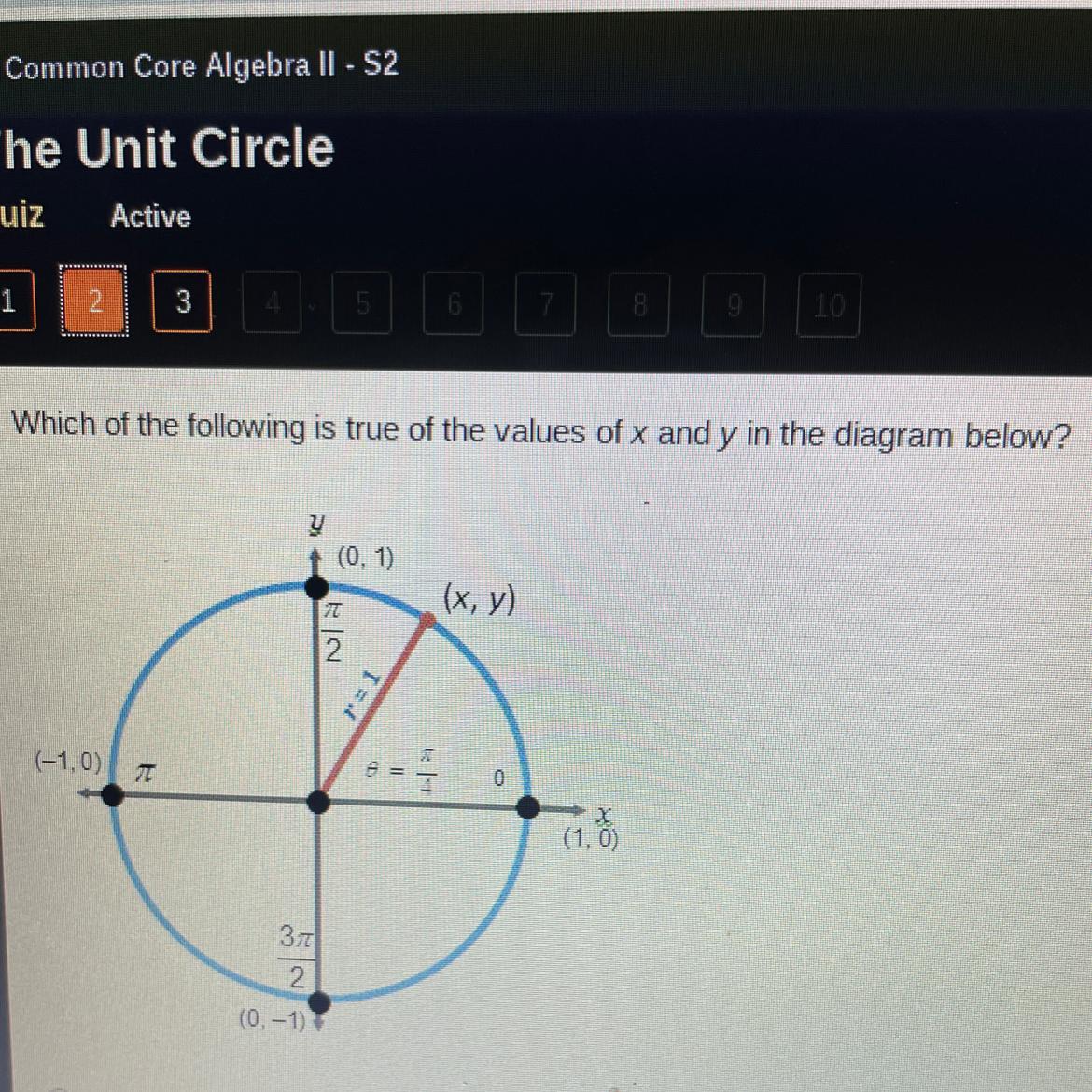 Which of the following is true of the values of x and y In the diagram below?