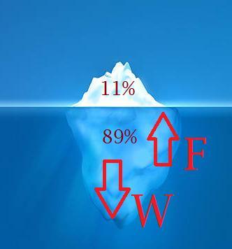 Only about 11% of the volume of the iceberg is exposed.