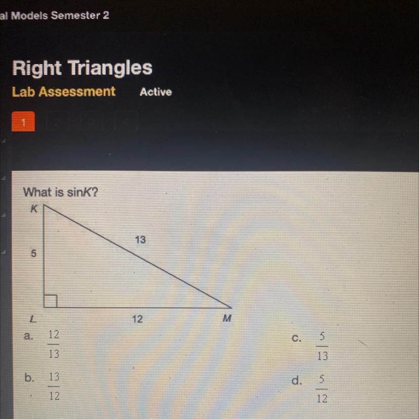 In this situation, the function is sine so sine= opposite/hypotenuse.