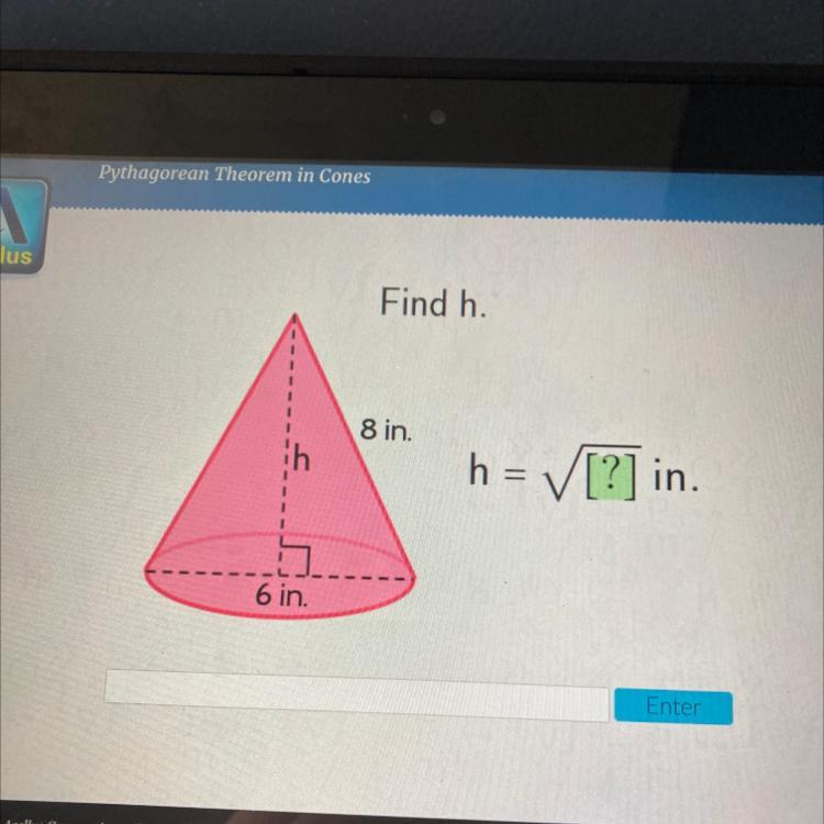 Here the legs are h and 6 ÷ 2 = 3, hypotenuse is 8