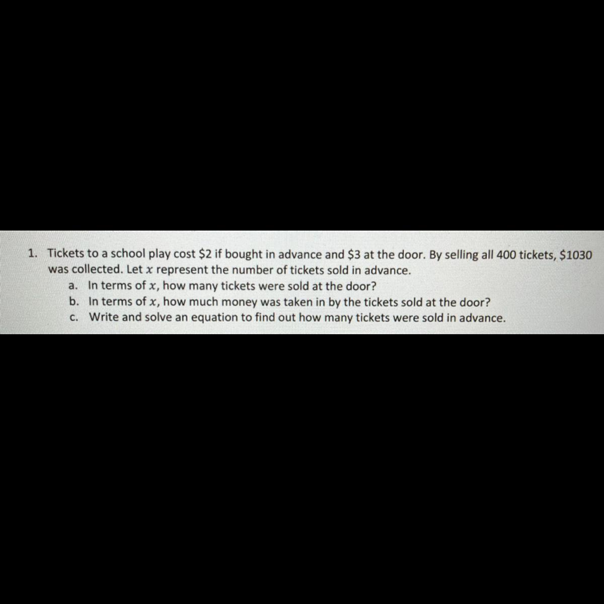 x=at door y=in advance