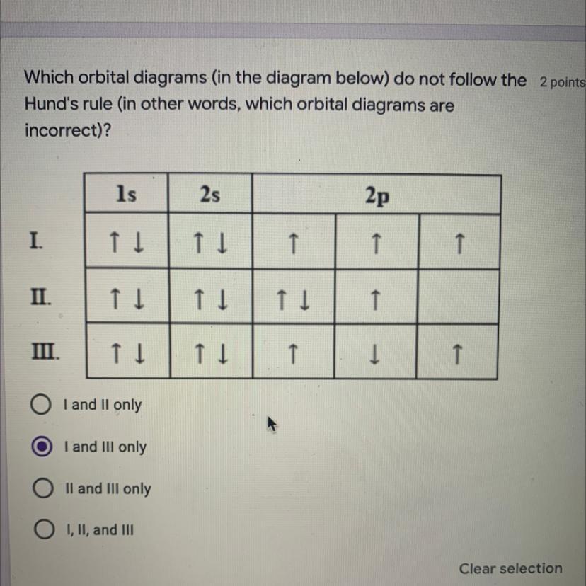 So, of the diagrams given, II and III do not follow Hund's rule and thus are incorrect.