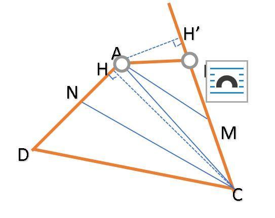 area ΔAMC = 1/2 CM x AH' = 1/4 BC x AH'