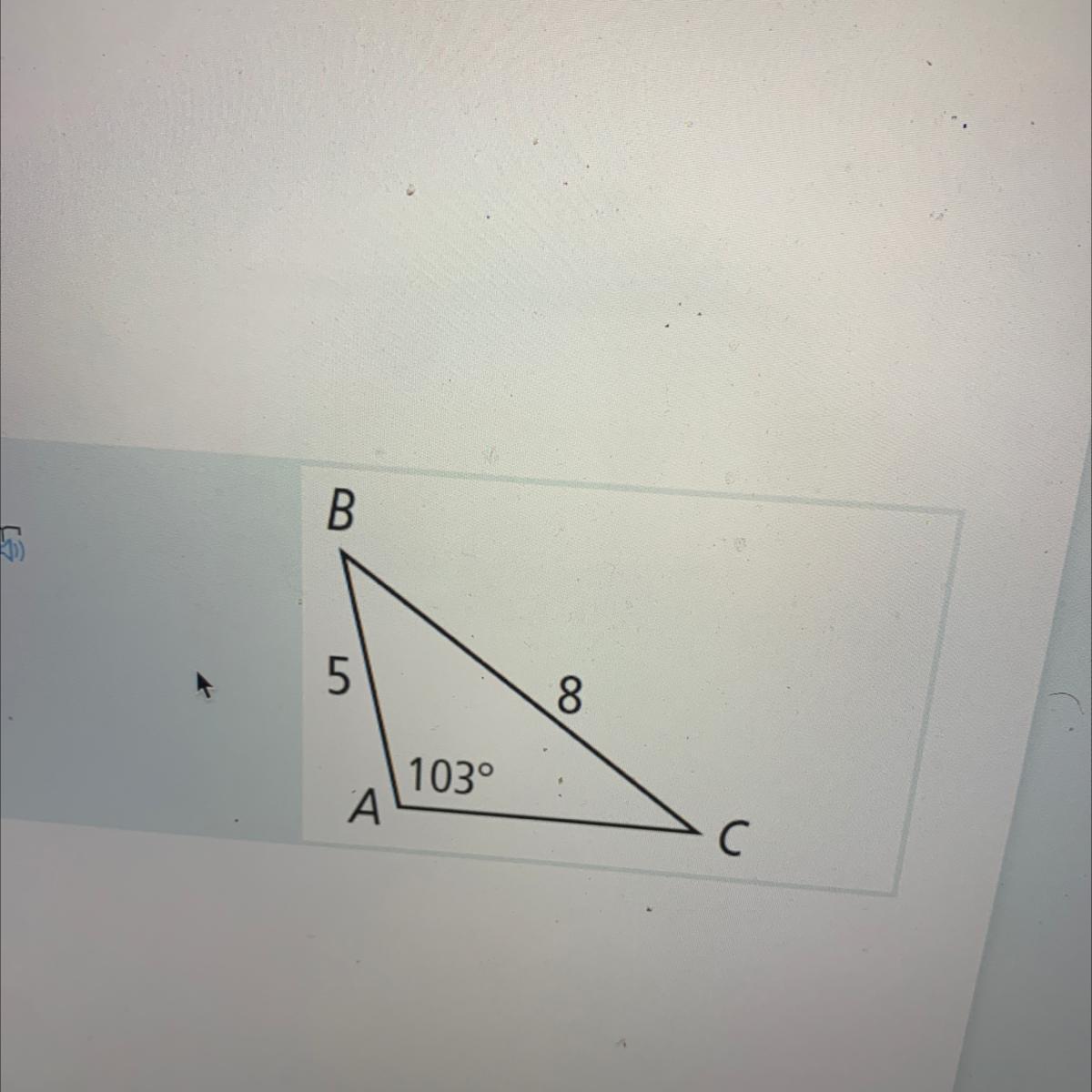 \Rightarrow \dfrac{8}{\sin 103}=\dfrac{5}{\sin C}\\\\\Rightarrow \sin C=\dfrac{5}{8}\sin 103^{\circ}=0.6089\\\Rightarrow C=37.51^{\circ}