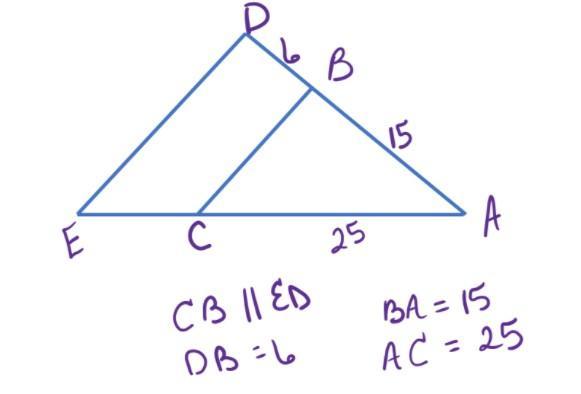 if DB equal to 6 then look down at CE, it has the same distance as D to B so CE equal to 6.