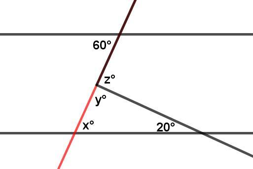 x+y+20 = 180 ... angles of a triangle add to 180