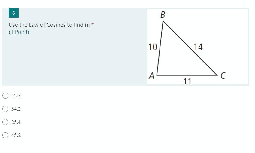 = arccos(11²+14²﹣10²/2·11·14)