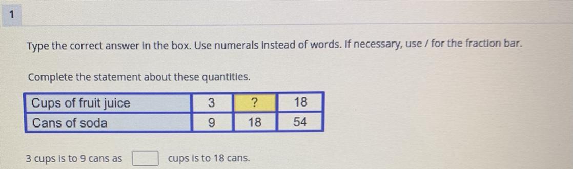 Type the correct answer in the box. Use numerals Instead of words. If necessary, use / for the fraction bar.