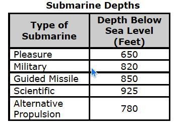 The greatest, farthest depths listed are the Guided Missile and Scientific submarines' depths, 850 and 925 feet. So, The answer is D, Guided Missile and Scientific.