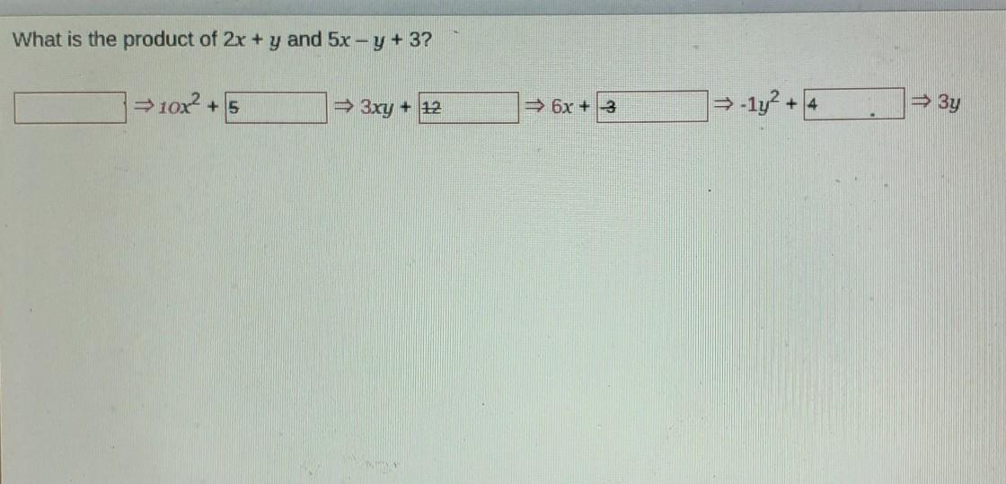 What is the product of 2x + y and 5x – y + 3? + Ay + Y Y​