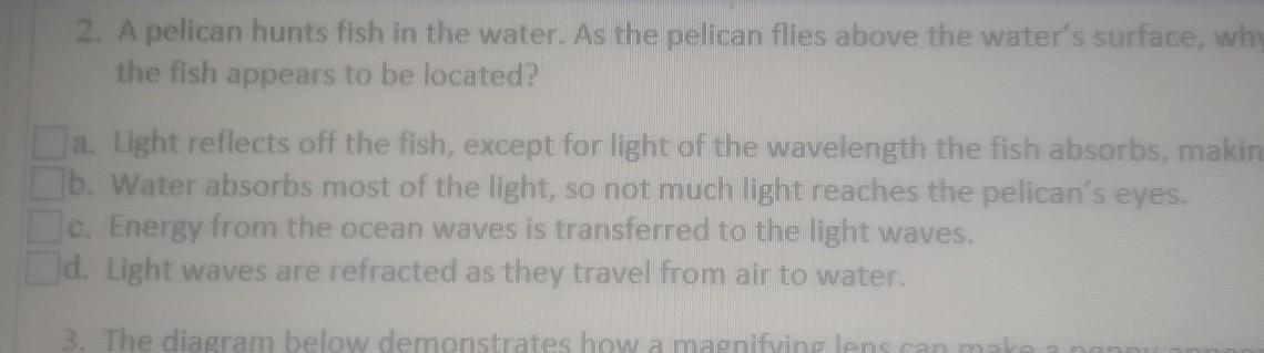 Index of refraction of water = 1.33