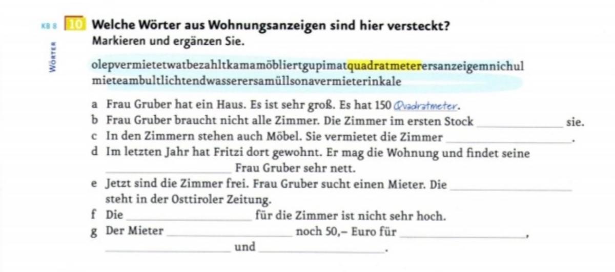 10) Wann <em>macht</em> Sonja die <em>Hausaufgaben</em> mit Claudias Schwester ? = When does Sonja <em>do</em> her <em>homework</em> with Claudia's sister?