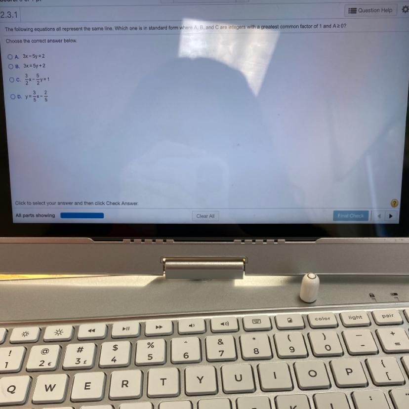 Here, variable terms are on one side, A, B, C are integers with greatest common factor of 1 and A ≥ 0. So, option A is correct.