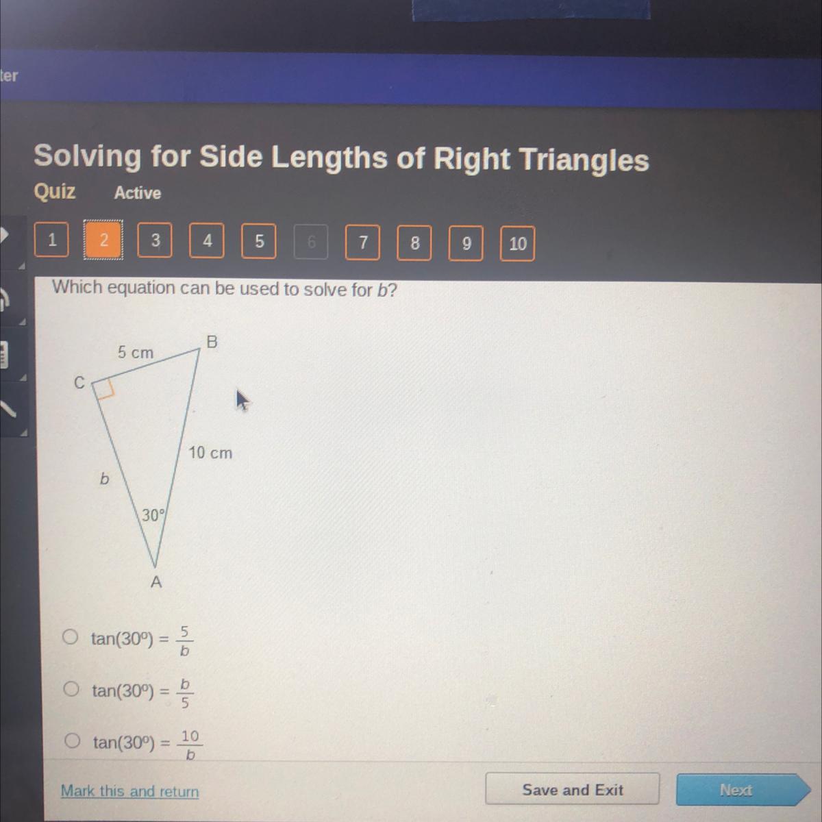 so for this triangle then Tan(30) = 5 / b is correct :)