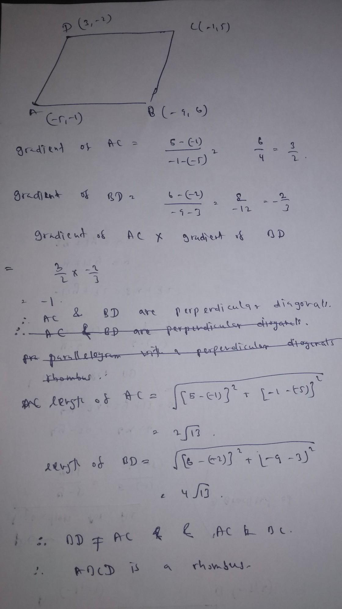 Step-by-step explanation:firstly find gradient then use one coordinate and substitute for x and y to get the y intercept (c)