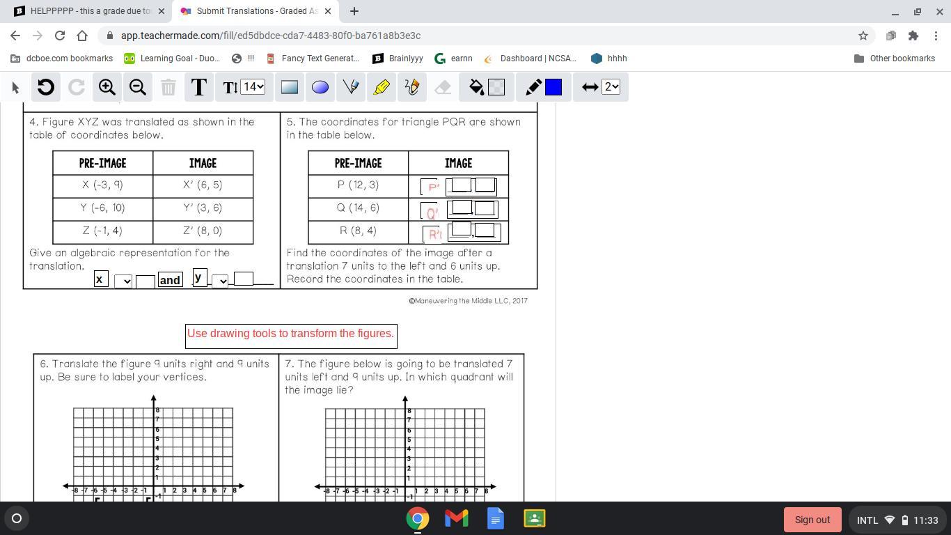 4. the algebraic representation of the translation is