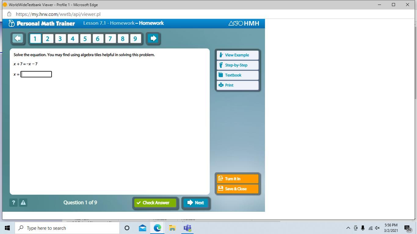 With this problem, subtract 7 from both sides to get