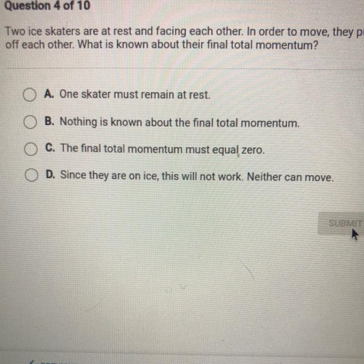 Answer C - the final total momentum must equal zero.
