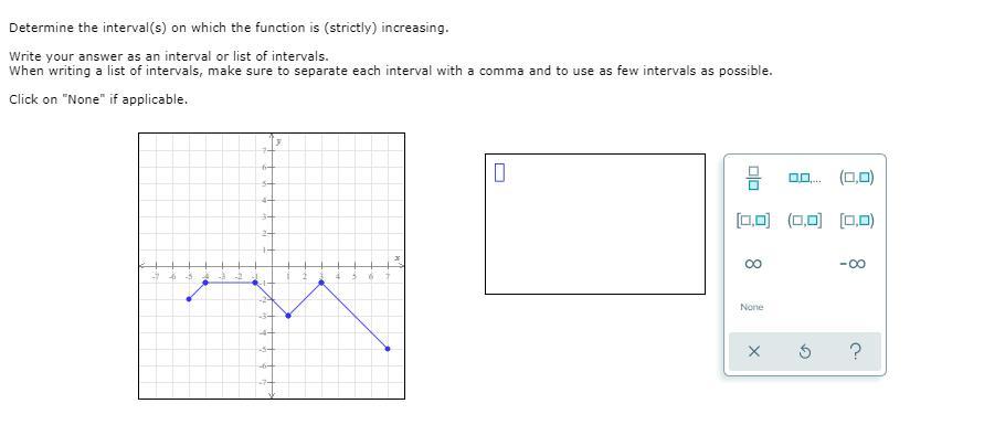 In the given graph, there are straight lines so you can say increasing interval would have +ve slope.