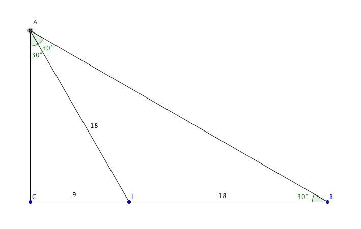 Then ∠BAL = ∠ABL = 30° and ΔABL is isosceles with AL = LB = 18 m.