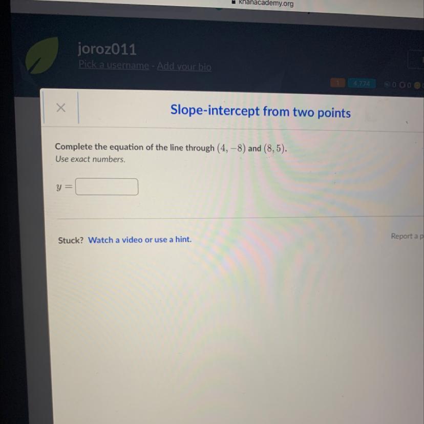 where, (x₁, y₁) = (8, 9)