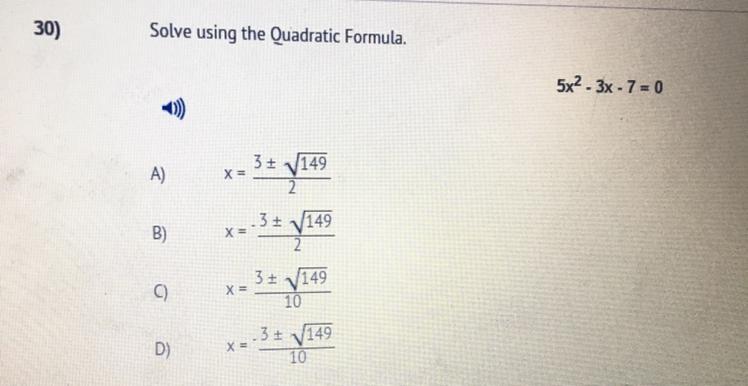 Solve using the Quadratic Formula