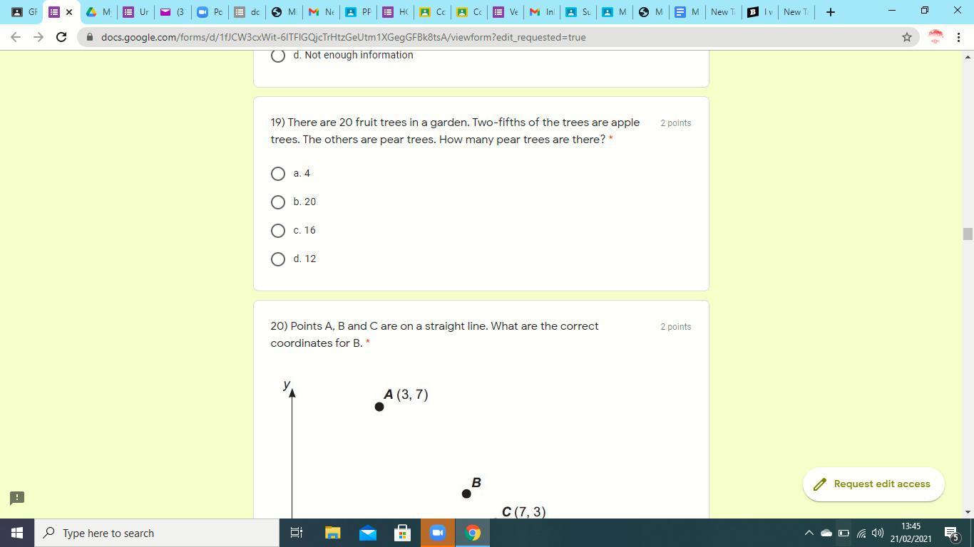 The answer is y=20 and the pair x-y is (0,20)