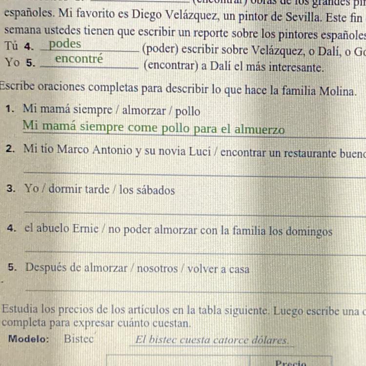 El tren <u>llegar</u><u> </u>a las y cuatro