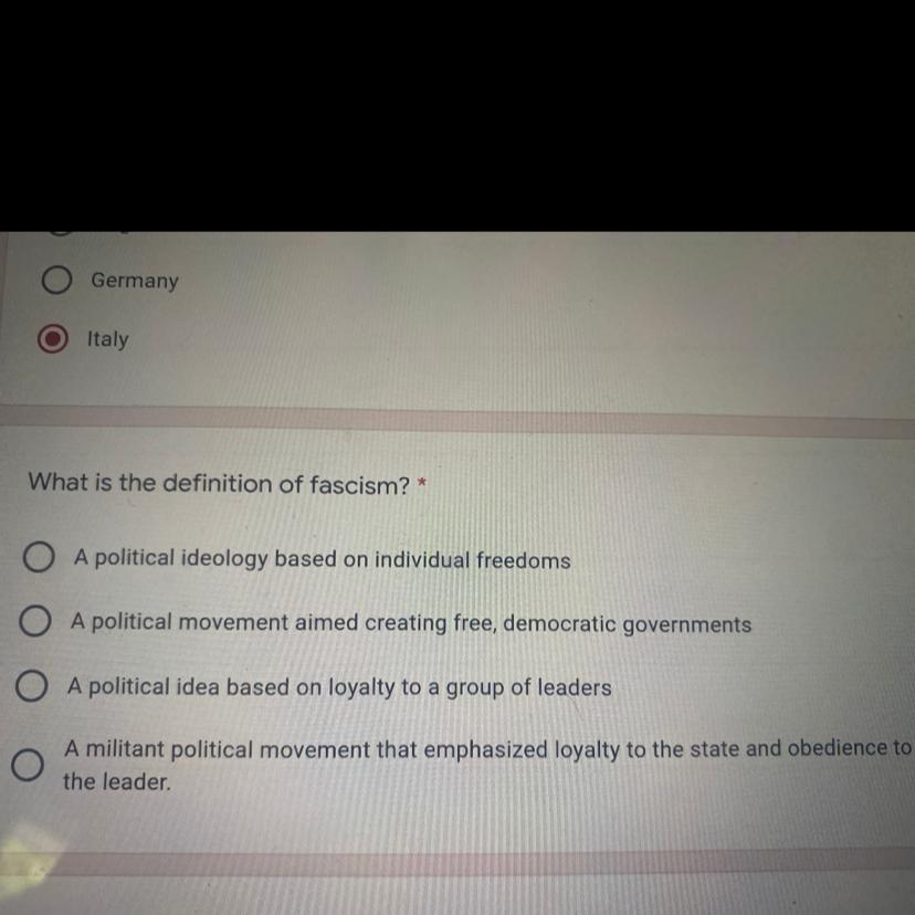 Fascism is a far-right form of government in which most of the country's power is held by one ruler. Fascist governments are usually totalitarian and authoritarian one-party states. It is a political philosophy or movement.
