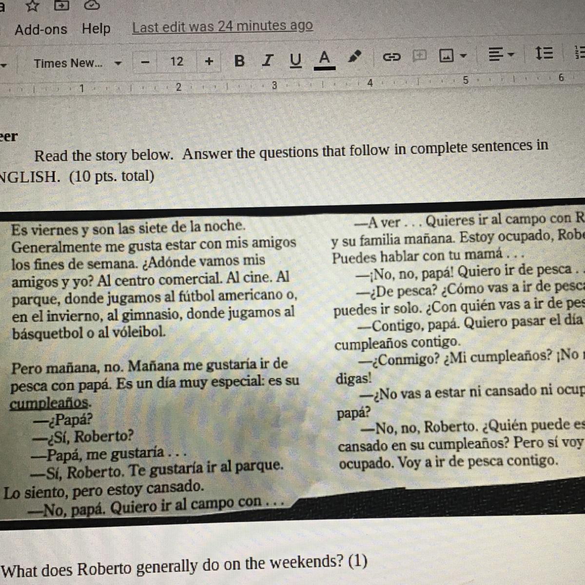 Question 5 with 1 blank