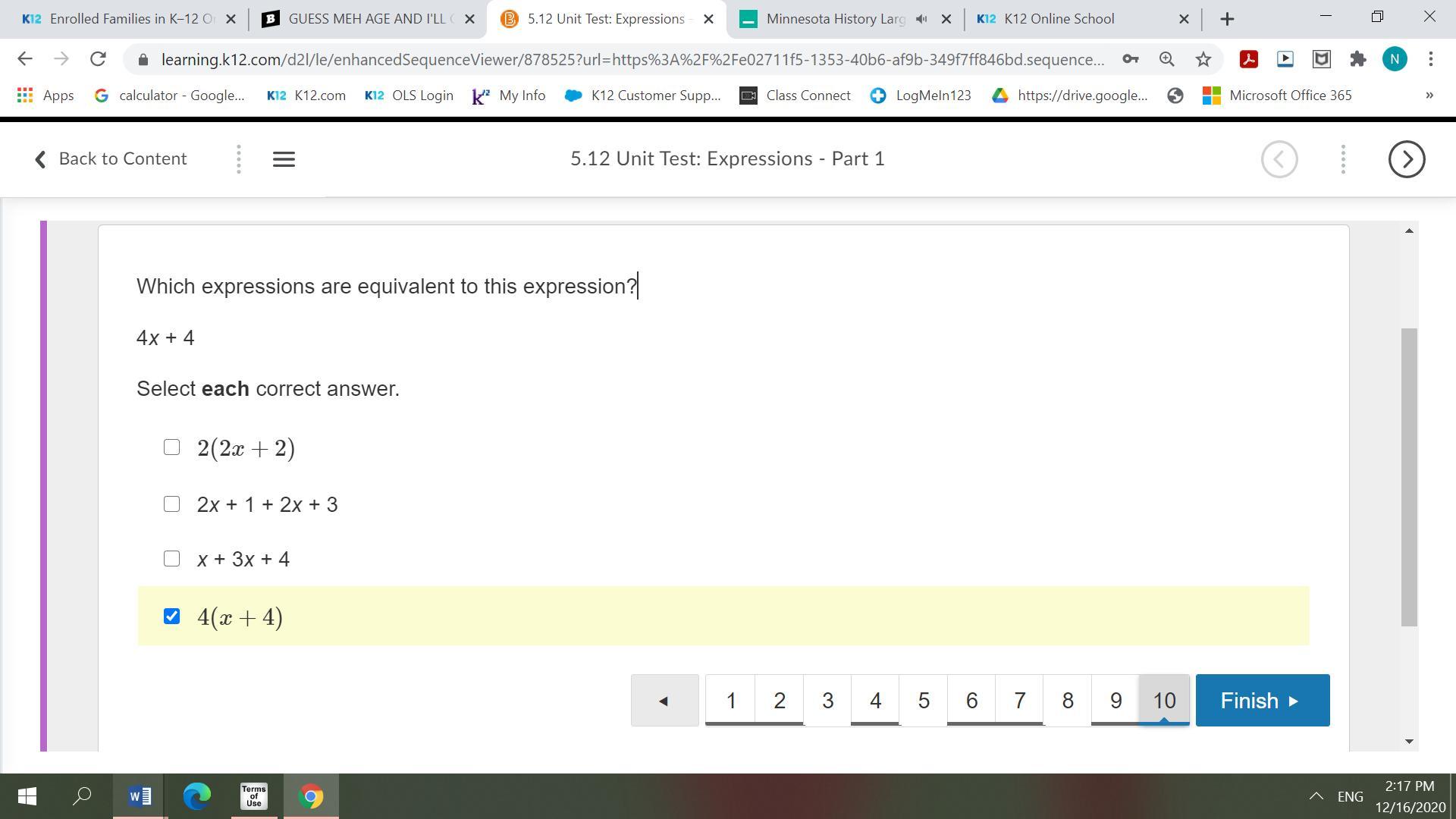 1) Simplify 2 + 2 to 4.
