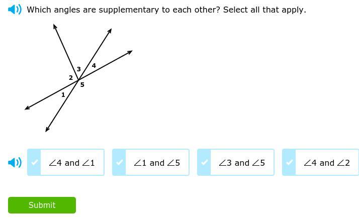 Two Angles are Supplementary when they add up to 180 degrees. They don't have to be next to each other, just so long as the total is 180 degrees. Examples: 60° and 120° are supplementary angles.