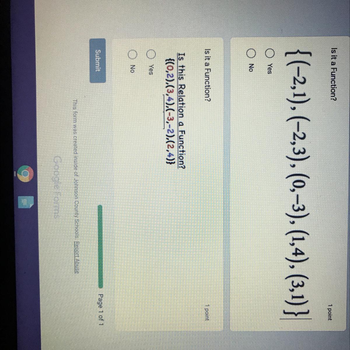 This relation is not a function because there are two y-values, 1 and 3, related to one x-value, -2.