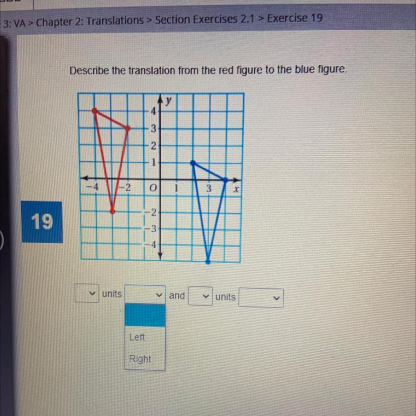 Now to go to the lowest point on the blue, you start by going right from - 3 to + 3 That is 6 units to the right.