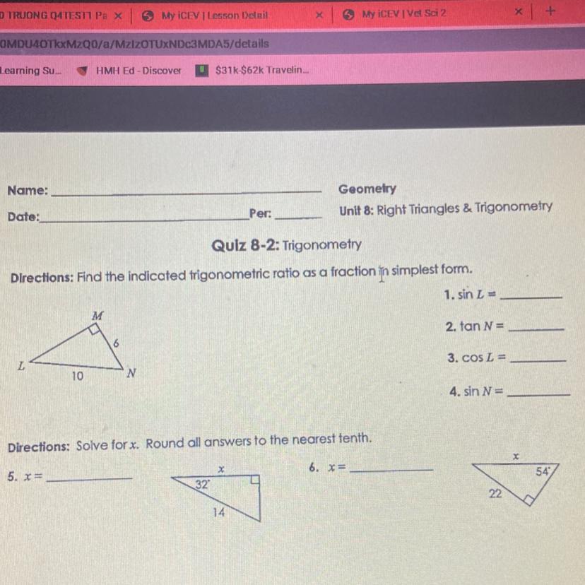 Quiz 8-2 trigonometry unit 8