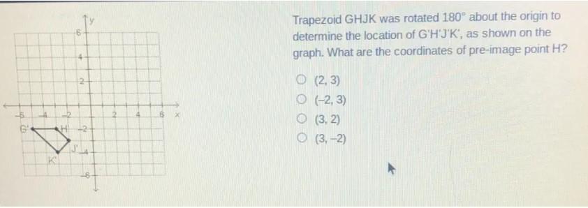 Thus, the coordinates of pre-image point H is (3, 2) option third (3, 2) is correct.