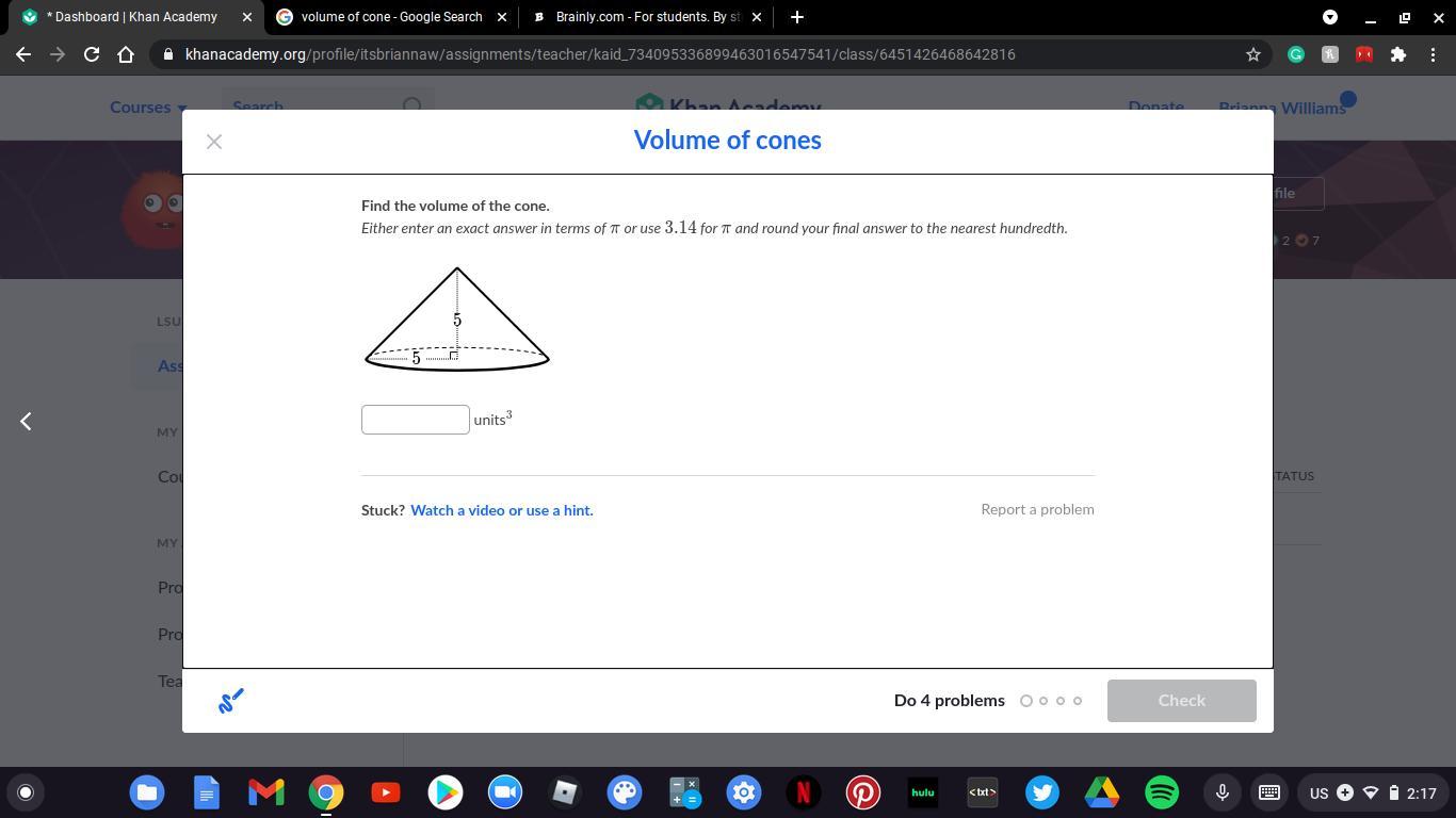 Notice that both methods have same answer. Hence, we can conclude that the volume of a cone is 125/3 pi units²