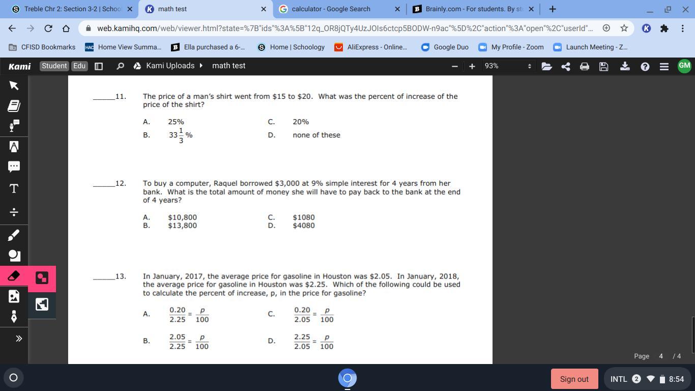 The first line is y = -2x + 8. Its slope is -2. A line perpendicular to this one will have a slope of 1/2.