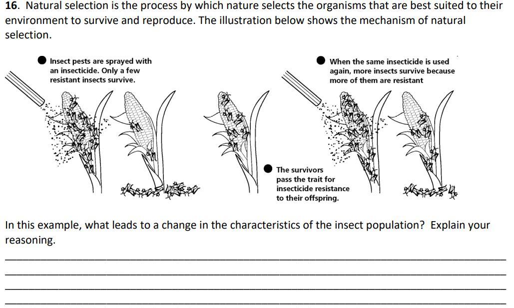 An adaptation occurred over time where the older insects that could repel the insecticide bred and populated. The insects that could repel the spray passed their trait to their off spring. This made it so there would be more survivors in the future.
