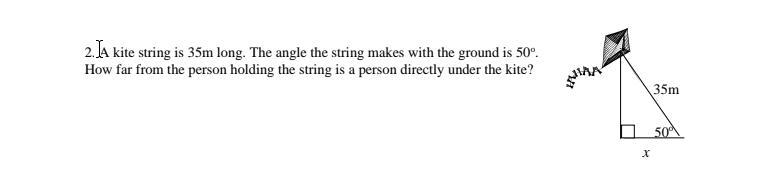 sine (41°) = opposed leg / hypotenuse = x / 1503 m => x = 1503m * sine(41°)