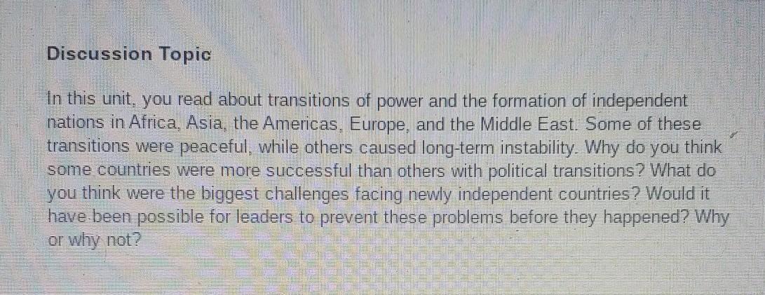 Through this process of decolonization, some countries were relatively more successful than others due to different variables and characteristics. Decolonization, in general terms, is a complex and violent process in which new nations are created. It involves the creation and imposition of nationalities based on ethnic and religious elements, one common language, the suppression of cultural and religious minorities. Moreover, many of the newly independent countries in Africa and the Middle East were established according to the borders created by the European colonizers, which did not have into account the local borders between ethnic groups and local cultures. Also, the fact that decolonization took place during the Cold War added more political conflict to this complex process, many new countries lied on one of the two sides of the global conflict. For all these reasons, it would have been very difficult for leaders to prevent these problems before they happened. Gandhi tried to avoid an eventual conflict between Muslims and Hindus, but he could not and the division between India and Pakistan happened very soon.