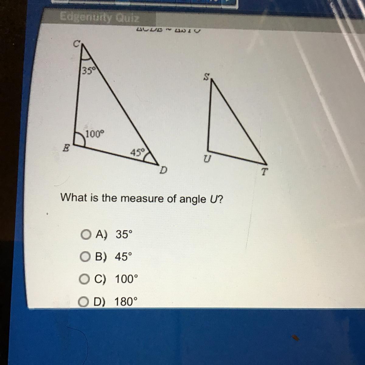 It is the same as the first triangle and in the first triangle that angle is 100º