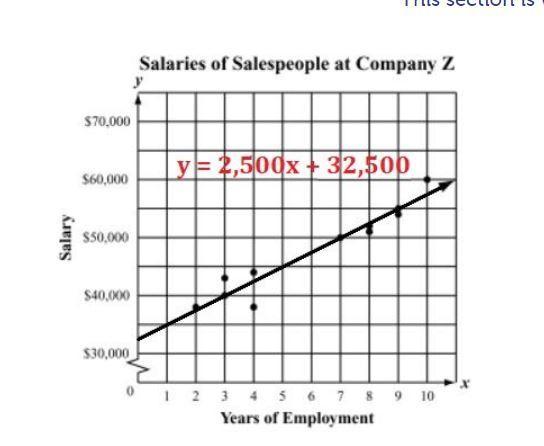 The slope represents an additional $ 2,500 in salary for each additional year of employment.