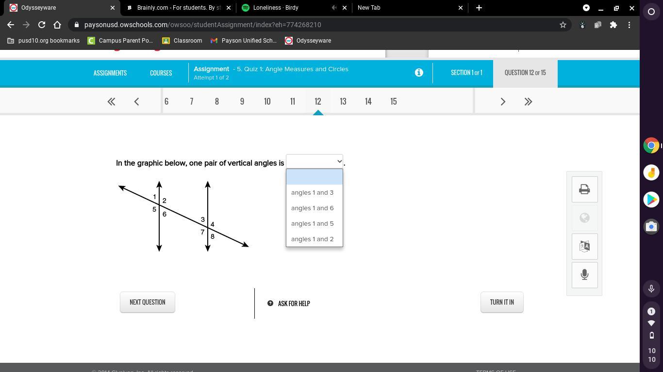 so x = angle 1