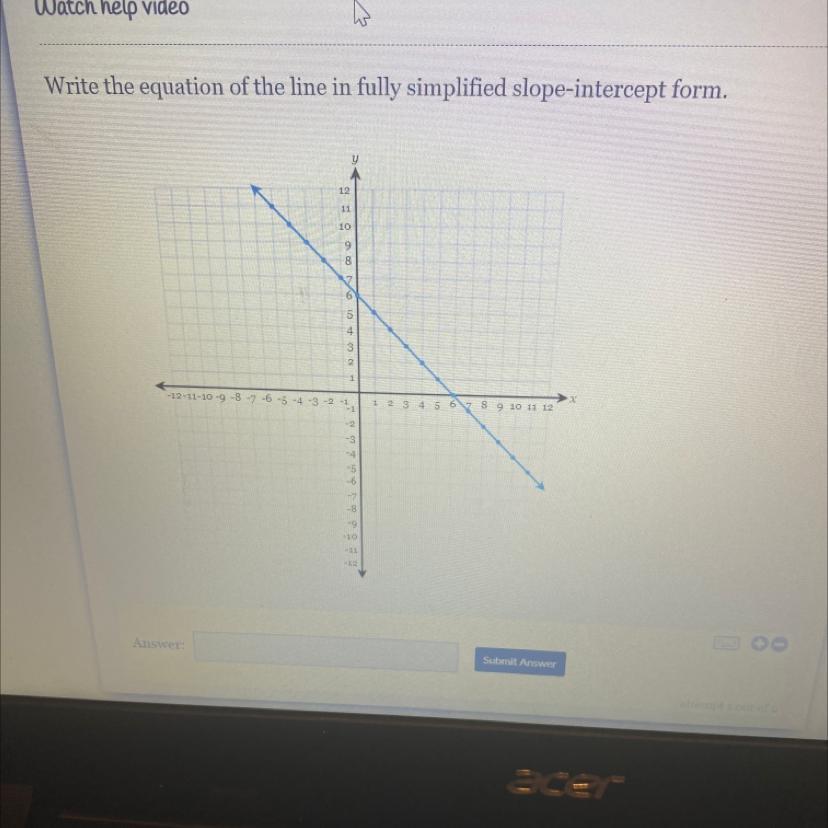 Equation of a line in slope intercept form is y= mx+b where m is slope and b is y-intercept ( where the graph intersects the y-axis)