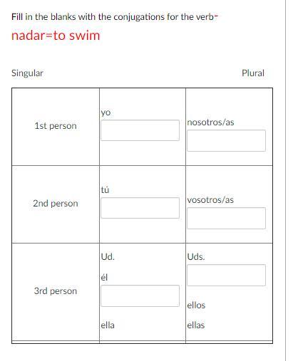 Usted, él, ella nada Ustedes, ellos, ellas nadan