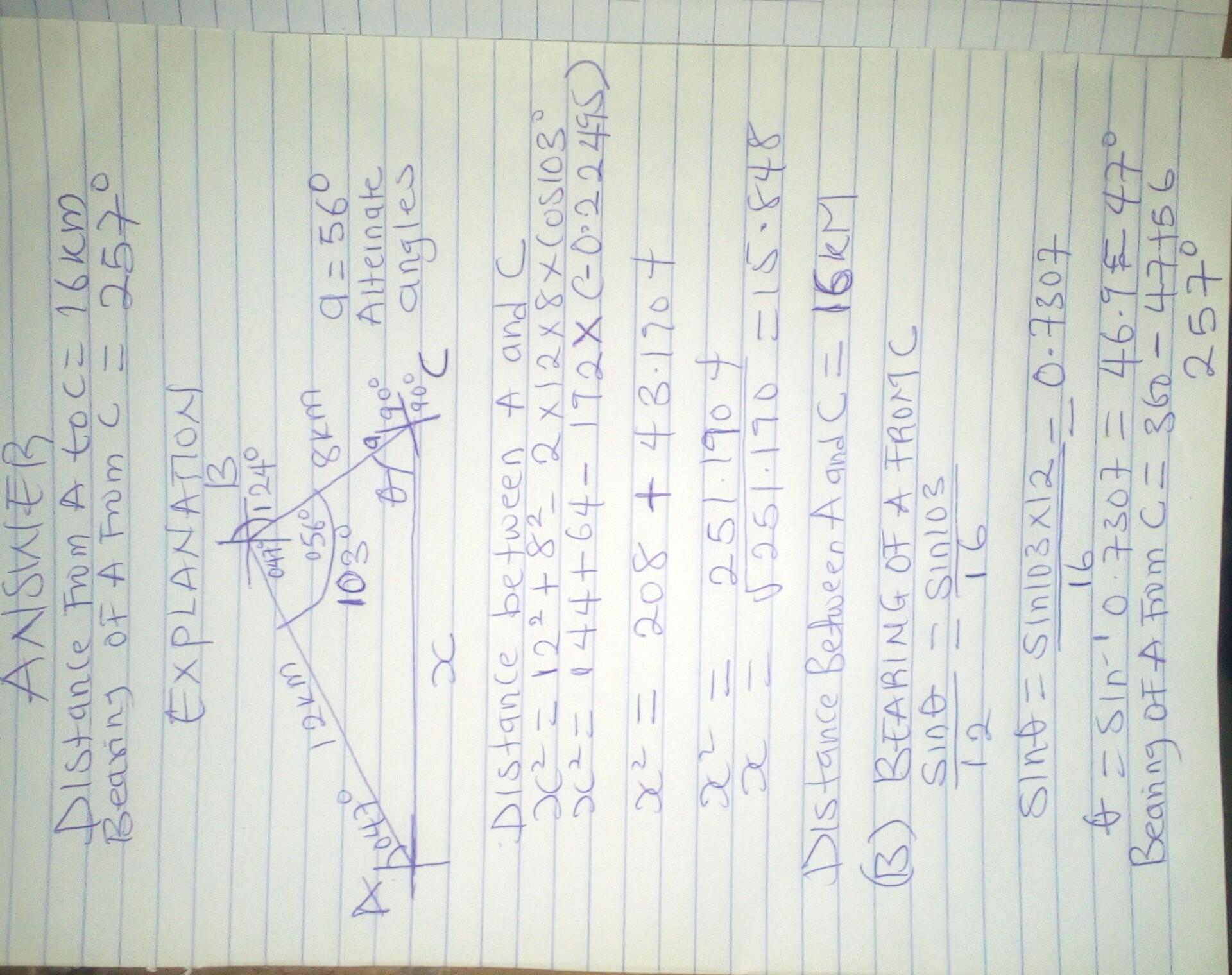 Bearing of A from C = 257°