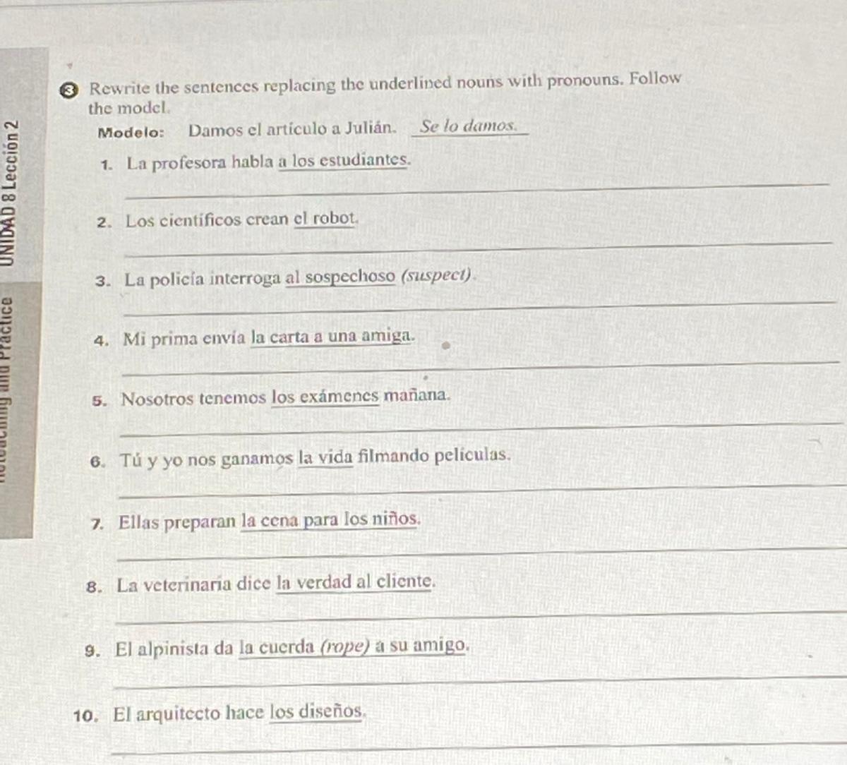 Question 4 with 1 blankLos científicos repitieron el experimento porque la prueba anterior no les (dio) buenos resultados.